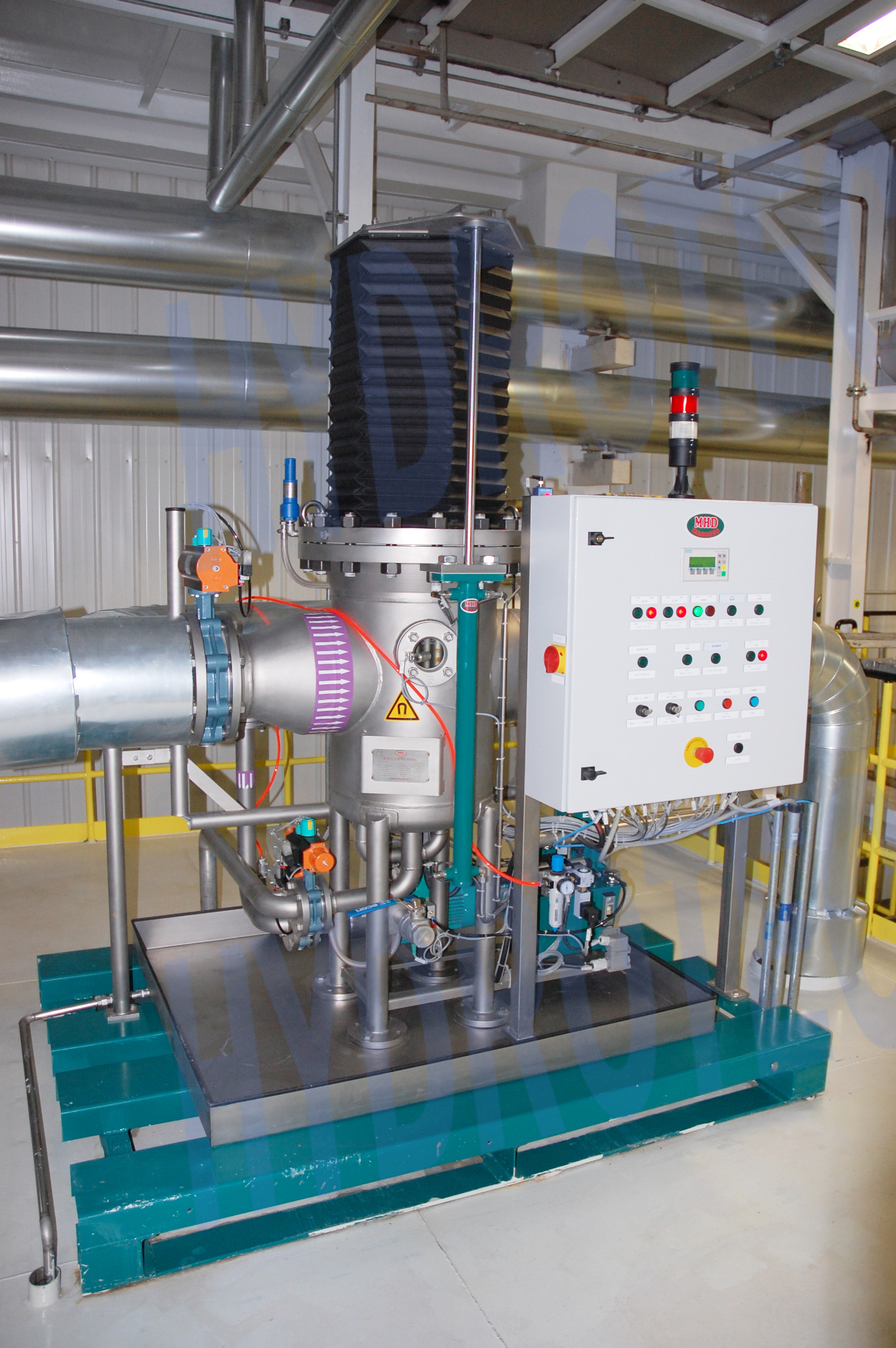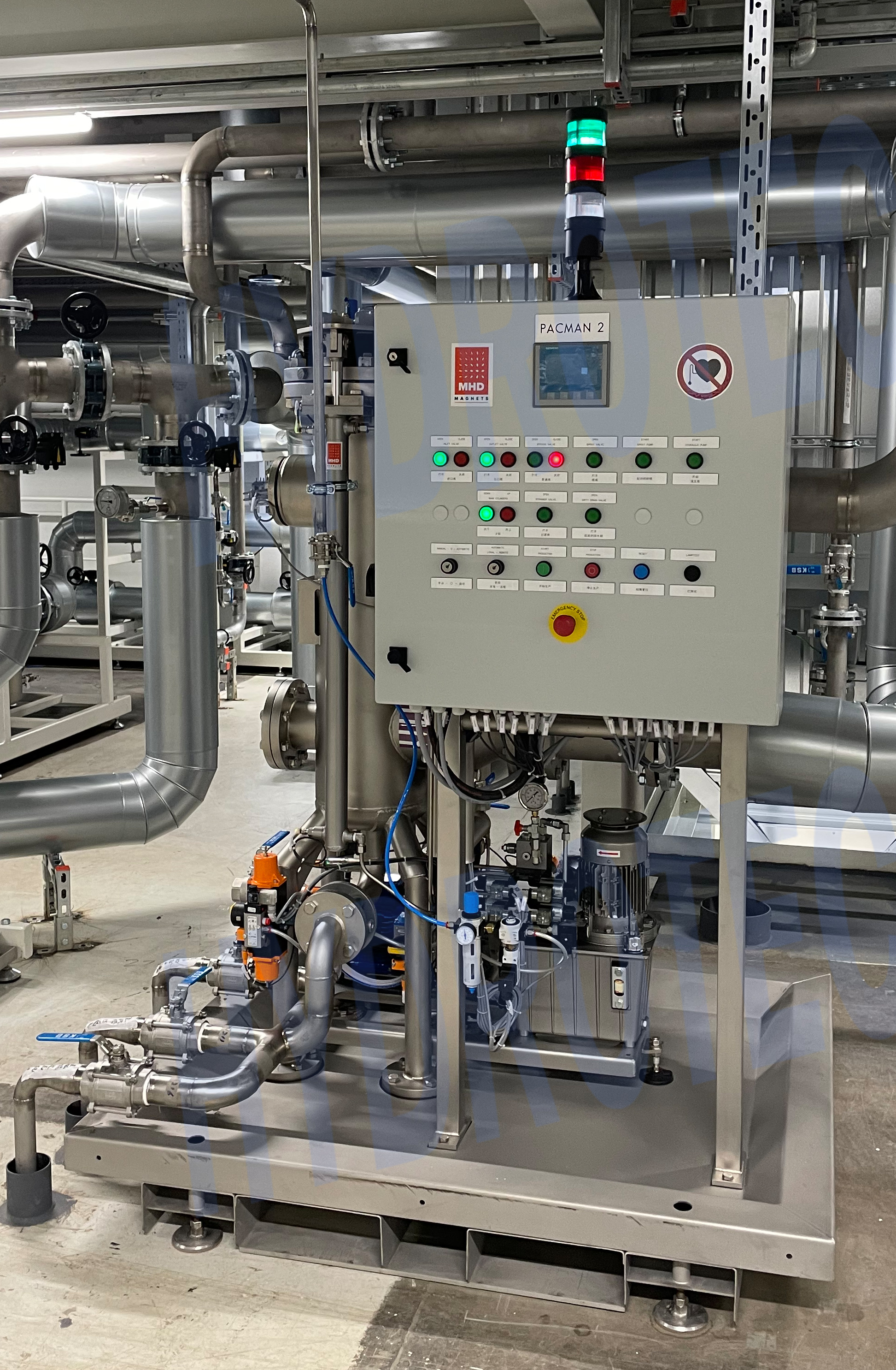 在汽车车身涂装前处理工艺中,MHD PACMAN磁性过滤器采用高强磁性密度材料,在物料高速流动的条件下,可以高效去除流体中的铁渣和铁屑。此设备设计合理,质量可靠,系统从运行到清洗可以自动控制进行切换。在对脱脂液的过滤中,可以去除70%~80%的 1微米以上的铁屑,从而大大减少由干铁屑造成的涂装表面划伤,保证涂装质量和优质外观。PACMAN磁性过滤器单台过滤流量最大可达到 500 m3/hr。